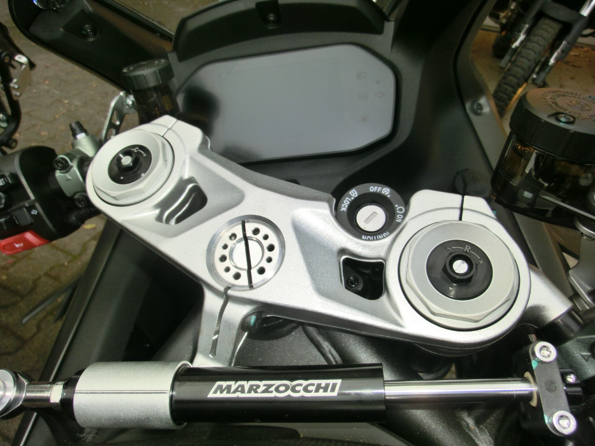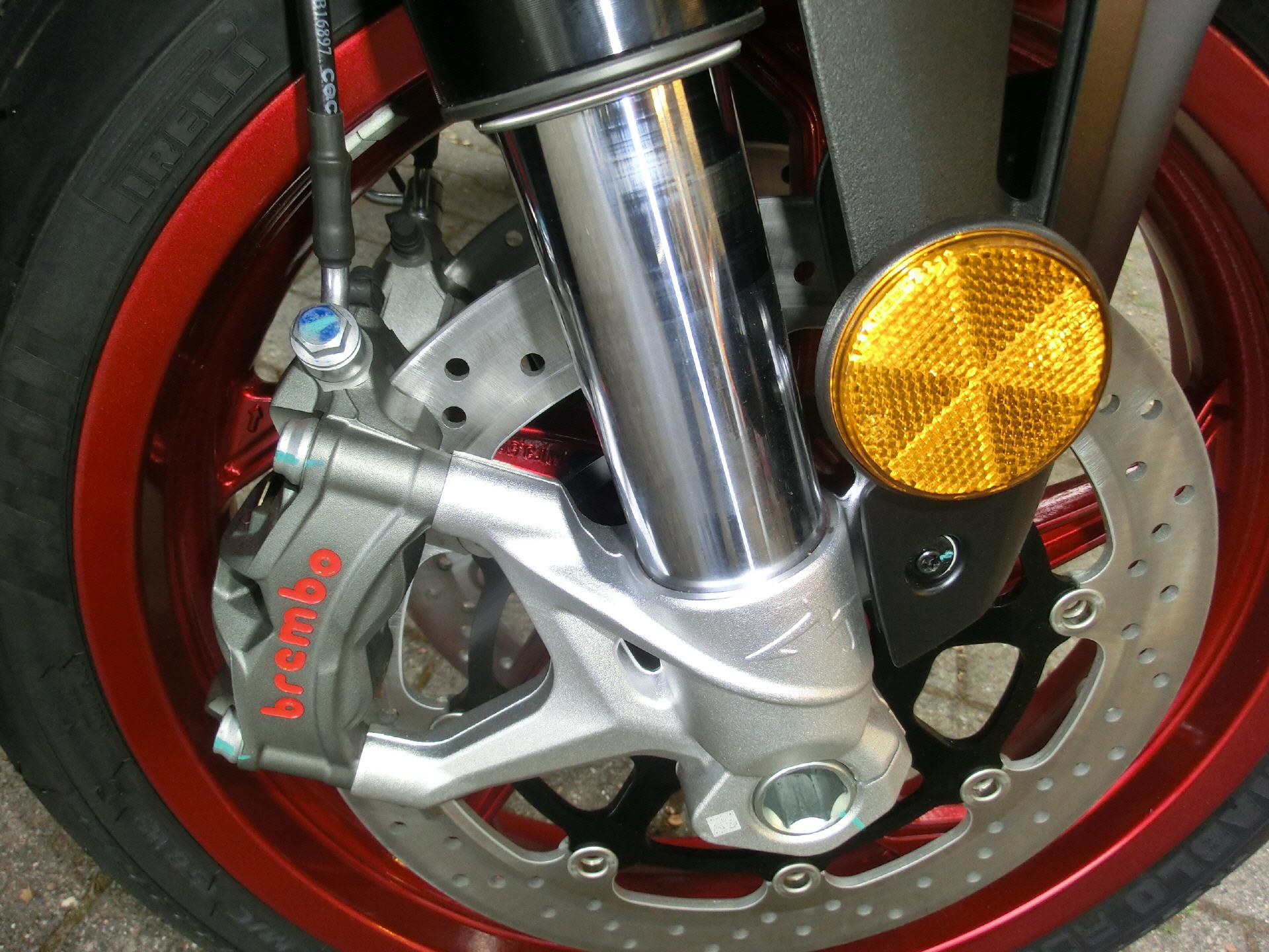 Bremse vorne: Zwei Bremsscheiben, gelocht, Ø 320 mm, Vierkolben-Festsattel (ABS)